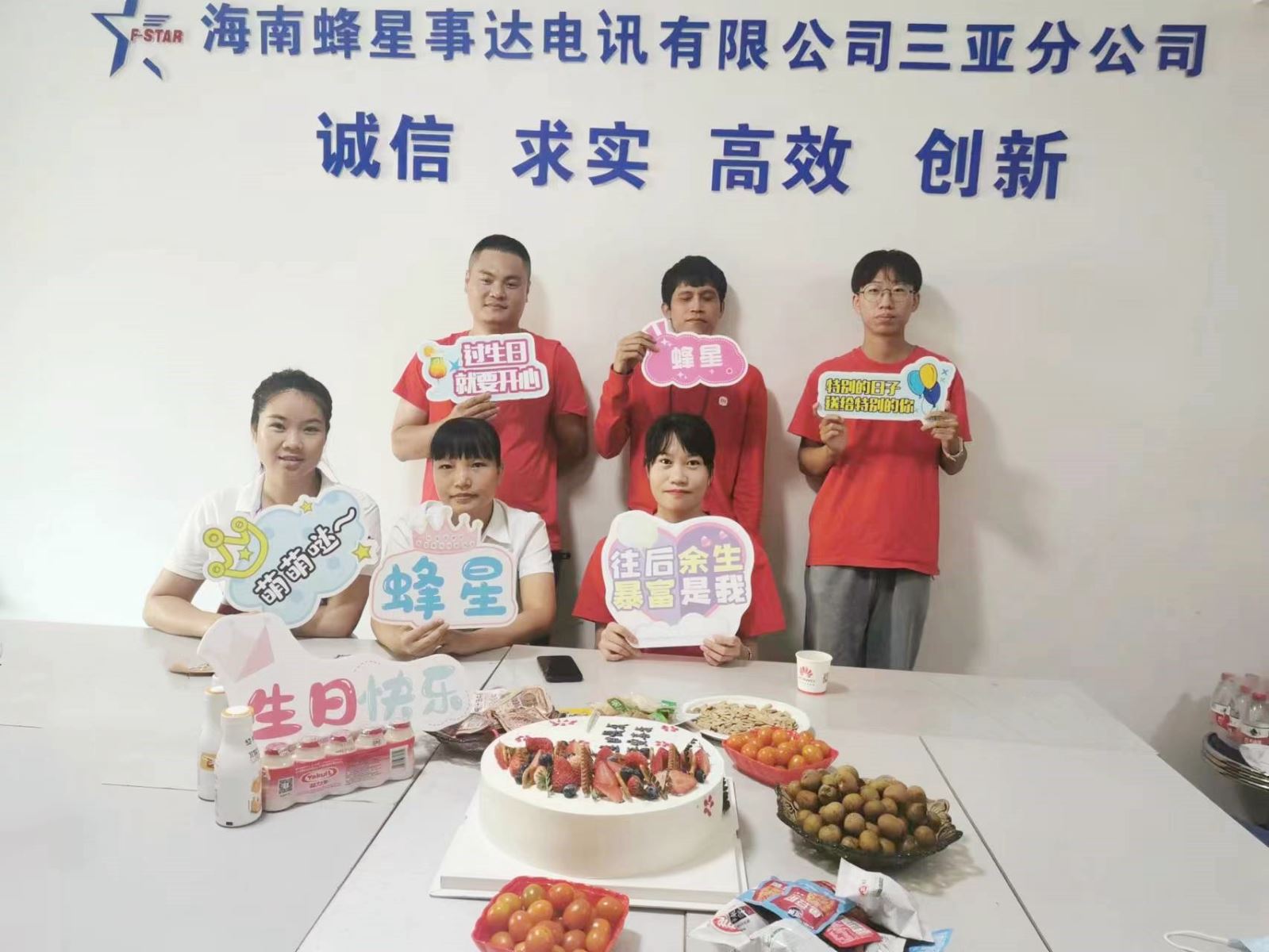 (开心合影)能与共同奋斗的小伙伴们 携手赴约 共度一个意义非凡的生日会 真是妙不可言 相机记录下的笑脸是 温暖的回忆 愿蜂星的每位小伙伴都幸福快乐 我们 一起并肩,一起欢笑 我们 一起奔跑,一起成长